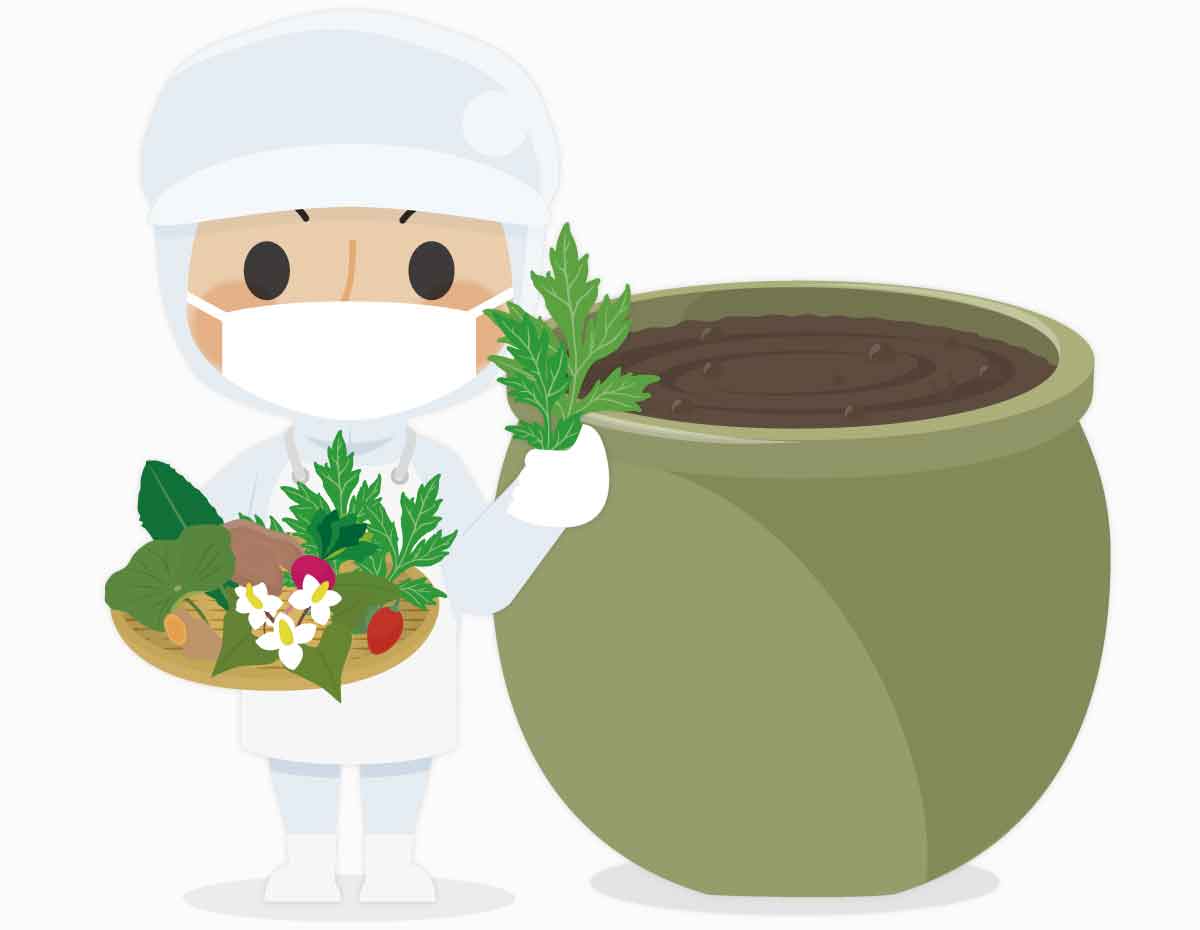 自然の土からできた陶製の甕は、通気性がよく、生き物である微生物が活発に活動するための最適な環境を甕内で整えてくれます。 そのため、完全なる発酵が甕の中で行われ、結果として酵素の質がグンと良くなります。萬葉の発酵と発酵映像