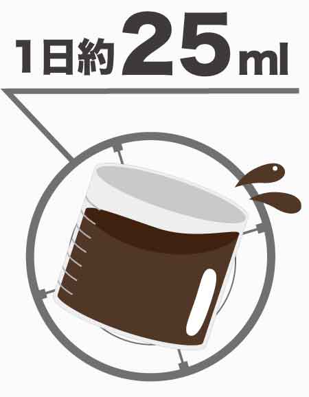 1日約25ml 濃縮原液の場合は、1日25mlを目安にお飲みください。